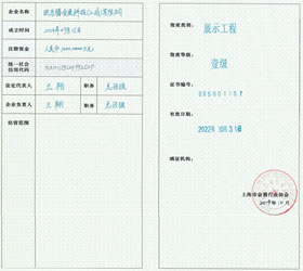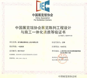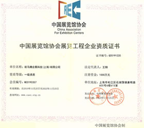 Certificado de calificación de primera clase de la empresa de ingeniería de exposiciones de la Asociación de exposiciones de China